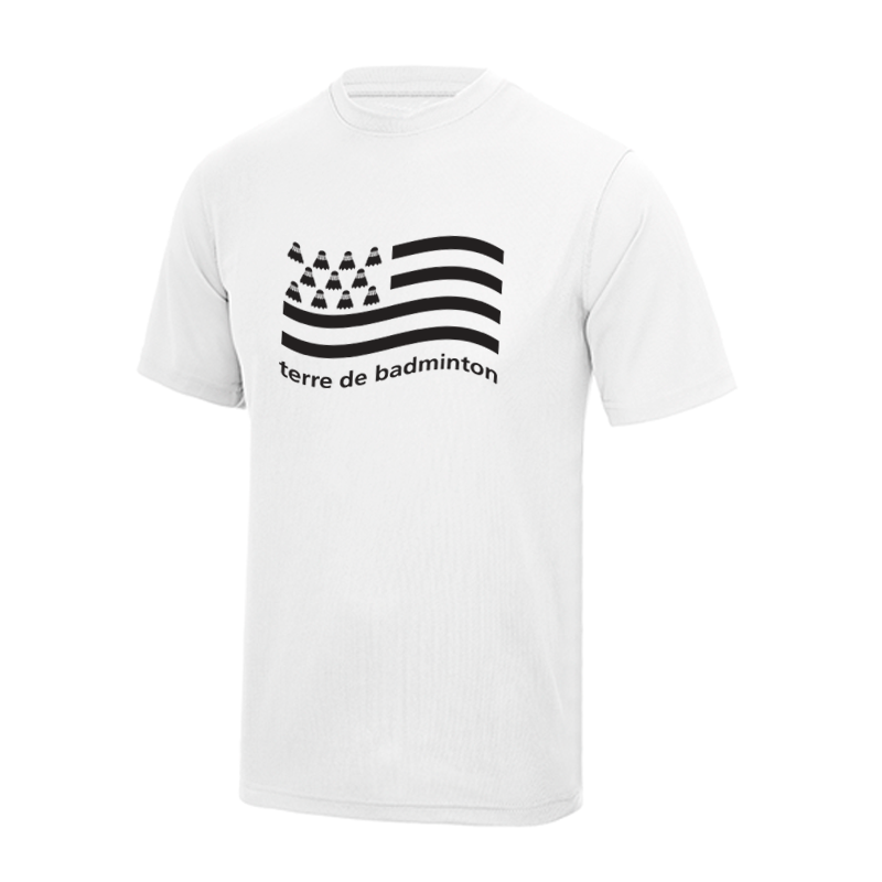 T-shirt badminton - Blanc avec motif Bretagne monochrome 100% Polyester