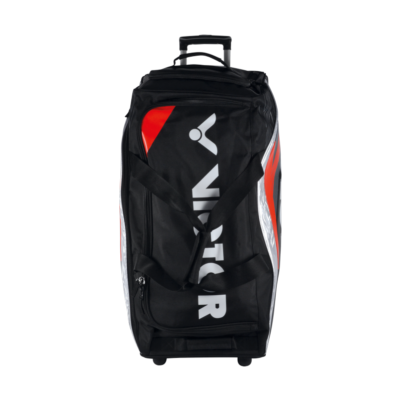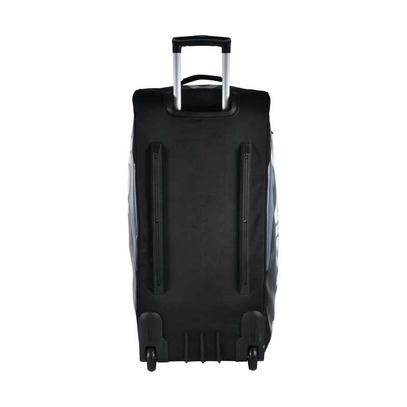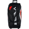Sac de sport de haute qualité avec des roues robustes et une poignée télescopique extensible qui est également parfaitement utilisable comme bagage de voyage. Des transitions et des fermetures à glissière fermement cousues fixent le grand compartiment principal ainsi que le compartiment latéral et le compartiment à chaussures sur le dessus. Equipé de deux poignées et sangles de transport ainsi que de bords résistants aux chocs. D'autres petits compartiments conviennent aux objets de valeur et aux petits objets.