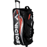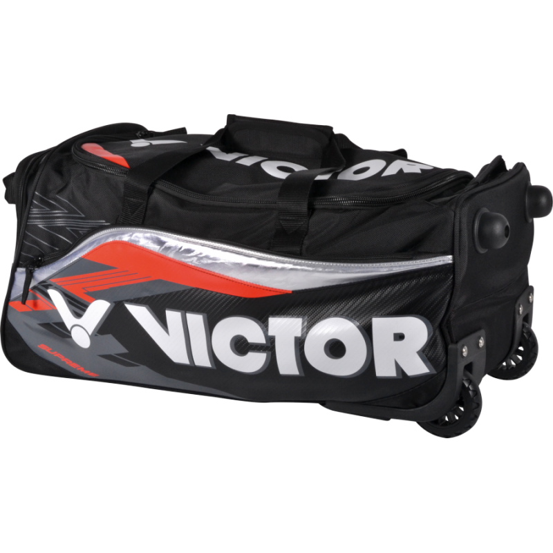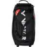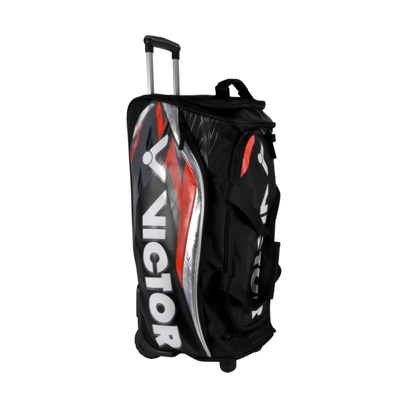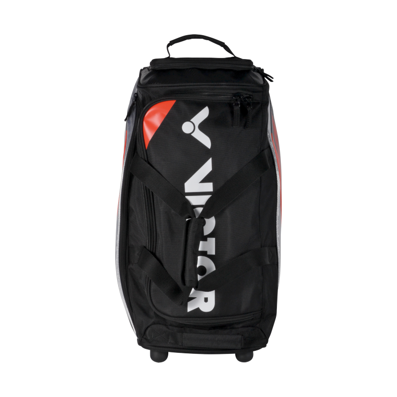 Sac de sport de haute qualité avec des roues robustes et une poignée télescopique extensible qui est également parfaitement utilisable comme bagage de voyage. Des transitions et des fermetures à glissière fermement cousues fixent le grand compartiment principal ainsi que le compartiment latéral et le compartiment à chaussures sur le dessus. Equipé de deux poignées et sangles de transport ainsi que de bords résistants aux chocs. D'autres petits compartiments conviennent aux objets de valeur et aux petits objets.