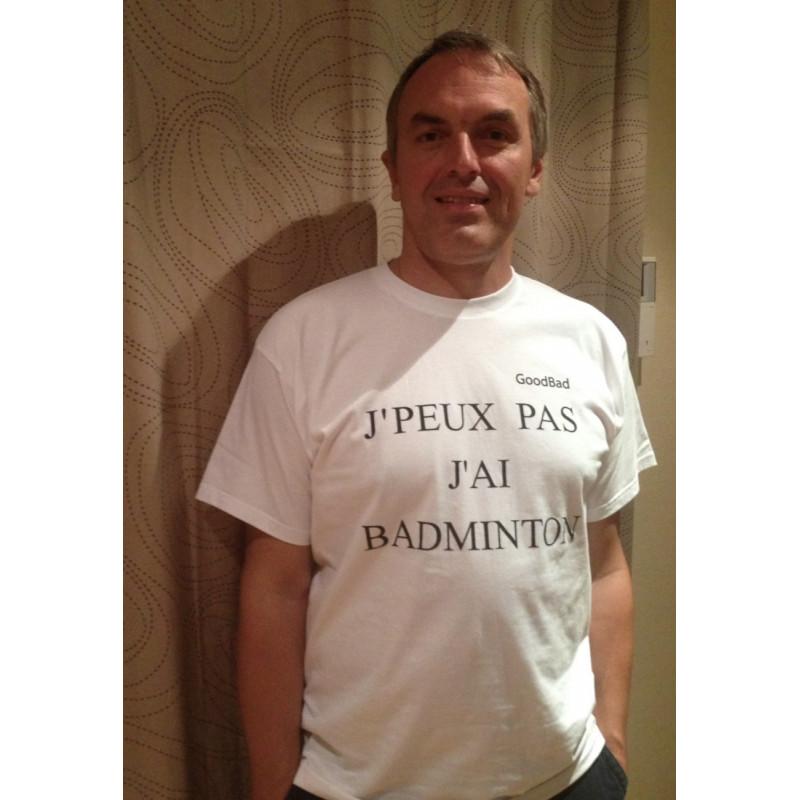 Premier T-Shirt historique au lancement de ma marque J'peux pas j'ai badminton en Septembre 2014